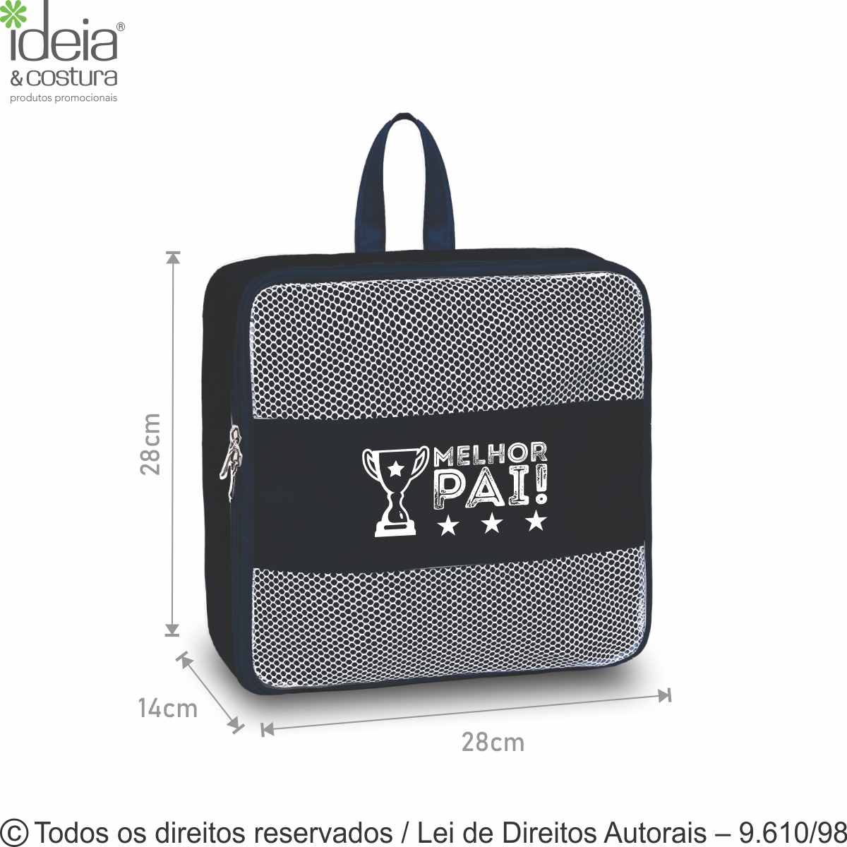 ORGANIZADOR DE NYLON 600G COM VISOR DE TELA MEDIDAS: 28CM LARGURA X 28CM COMPRIMENTO X 14CM DE ALTURA - DIFERENCIAIS: ACABAMENTO COM VIVO NAS BORDAS, FECHAMENTO COM ZÍPER E DOIS CURSORES, FAIXA PARA PERSONALIZAÇÃO, ALÇA REFORÇADA DO MESMO NYLON. ORGANIZA GAVETAS, ARMÁRIO OU MALA DE VIAGEM.