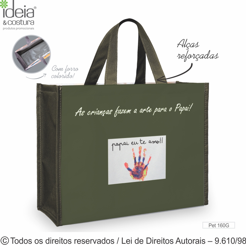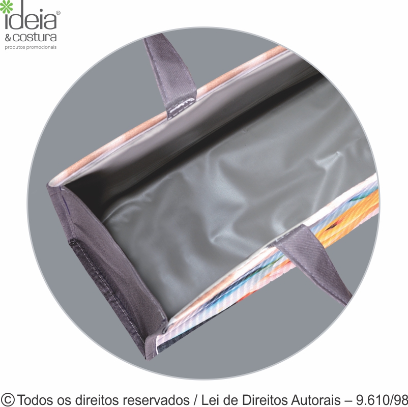 Sacola de tecido PET com laterais em nylon 600g medidas: 40cm de largura x 32cm de altura x 10cm de lateral e profundidade - Diferenciais: acabamento com viés nas laterais, alças reforçadas de nylon 600g, as laterais e o fundo são de nylon 600g proporcionando mais resistência e a possibilidade de ser colorido. A frente e o verso da sacola são de PET viabilizando a impressão em silk screen ou imagem com sublimação. O cliente escolhe a cor da alça e das laterais da sacola. Pedido mínimo 100 unidades.
