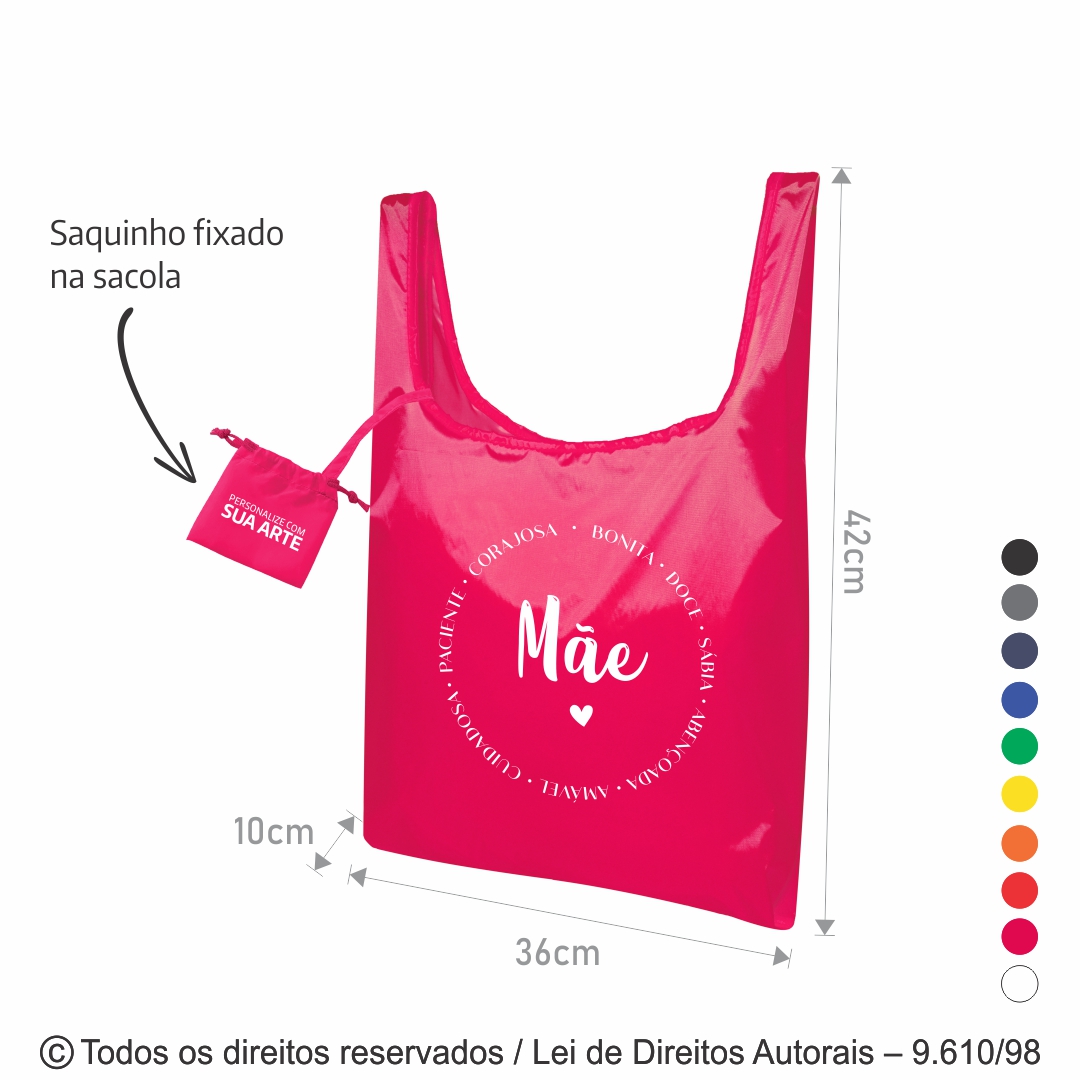 SACOLA DOBRÁVEL DE NYLON 70G RESINADO COM EMBALAGEM MEDIDAS: 38CM DE LARGURA X 42CM DE ALTURA X12CM DE PROFUNDIDADE. INCLUSO EMBALAGEM DO MESMO NYLON COM ALCINHA FIXADA NA SACOLA MEDIDAS: 12CM X 11CM FIXADO NA SACOLA. LEVE NA BOLSA, TENHA SEMPRES A MÃO UMA SACOLA RETORNÁVEL E RECUSE AS SACOLAS DE PLÁSTICO QUE SÃO TÃO PREJUDICIAIS AO MEIO AMBIENTE.
