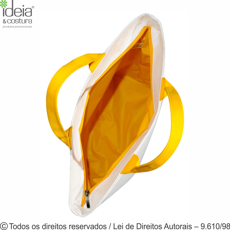 Bolsa térmica em Pet 150g medidas: 40cm de largura x 37cm de altura x 14cm de profundidade - Diferenciais: aba para fechamento com zíper e alças reforçadas de cadarço de nylon. Pode ser usada como bolsa, o cliente escolhe a cor para a bolsa e para a alça. Pedido mínimo 100 unidades.