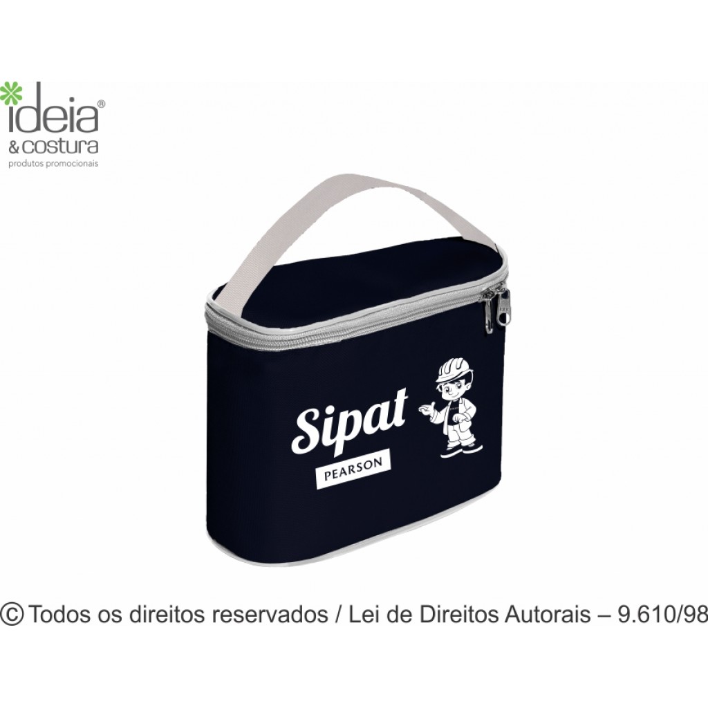 Nécessaire térmica de nylon 600g medidas: 20cm de largura x 17cm de altura x 9cm de profundidade - Diferenciais: fechamento com zíper 2 cursores e acabamento com vivo. O cliente escolhe a cor da nécessaire, do vivo e da alça.