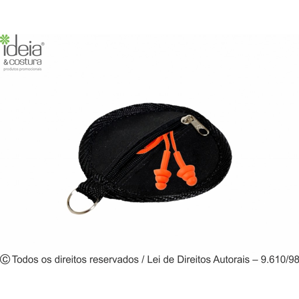 Porta fone de ouvido de nylon 600g medida 12,5 de diâmetro - acabamento com viés e argola de metal, fechamento com zíper. O cliente escolhe a cor que deseja. Inove com um brinde exclusivo. Pedido mínimo 100 peças.