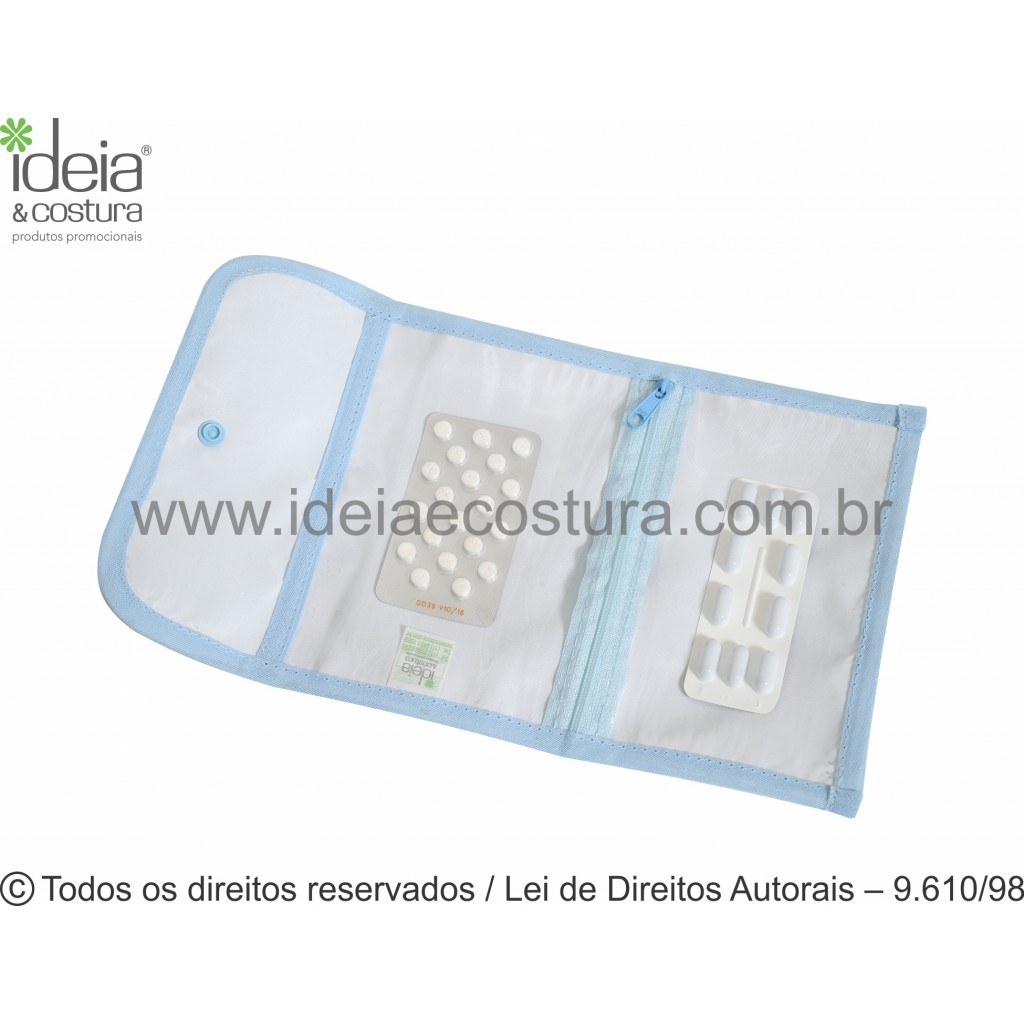 Porta Medicamento De Nylon Medida Aberta: Largura 17cm X Altura 30cm Medida Fechada, Largura 17cm X 12cm Altura - Compartimentos Com Zíper, Fechamento Com Botão De Pressão, Acabamento Com Viés, Forro Em Microfibra O Que Permite A Impressão Ou Sublimação De Imagens Na Parte Interna. Pedido mínimo 100 peças.