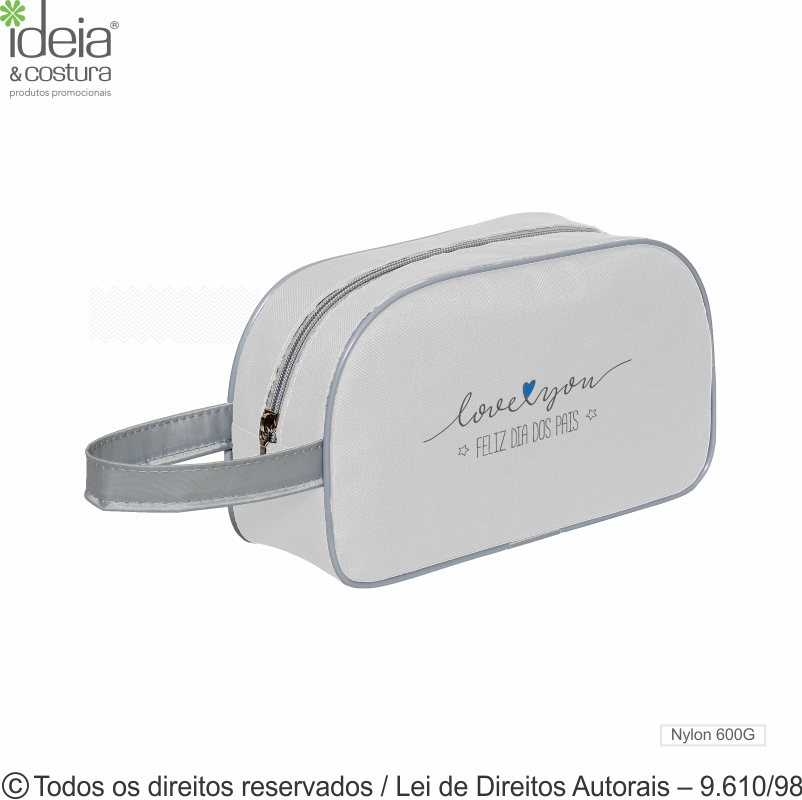 Nécessaire de nylon 600g medidas: 25cm de largura x 15cm de altura x 8cm de lateral e profundidade - Diferenciais: acabamento em vivo e alça para levar na mão. O cliente escolhe a cor da nécessaire e do vivo. Pedido mínimo 100 peças.