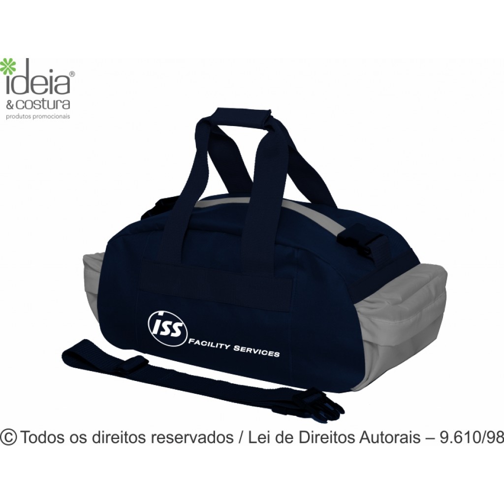 Bolsa de viagem confeccionada em nylon 600g com detalhes em nylon amassado medidas 50cm de largura x 27cm de altura x 22cm de lateral e 20cm de profundidade - Diferenciais: corpo e lateral confeccionado em nylon 600g, alças em cadarço de nylon com 5cm largura, alças de mão com munhequeira e alça transversal removível com regulador, 1 bolso frontal e 2 bolsos laterais fechamento com zíper, dois compartimentos internos com velcro. Pedido mínimo 100 unidades.