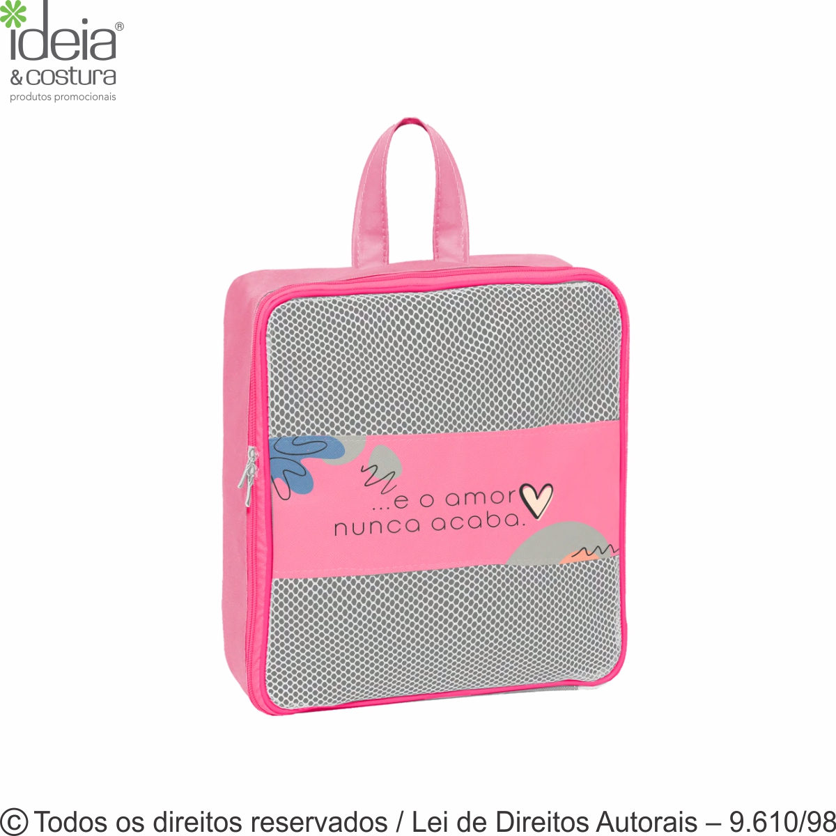 Organizador de Cordoba medidas: 23cm largura x 27cm comprimento x 9cm de lateral e profundidade - Diferenciais: aba para fechamento com tela, acabamento com vivo nas bordas, fechamento com zíper e dois cursores, faixa para personalização, alça do mesmo tecido. Organiza gavetas, armário ou mala. Pedido mínimo 100 peças.